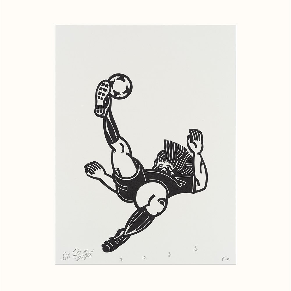 ‚Rückzieher’ – Sebastian Gögel, 40 x 30 cm, Linolschnitt, 2024